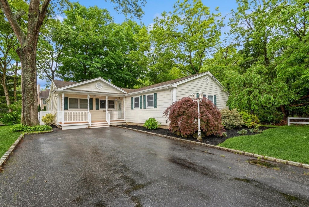 Home awaits in this stunning Lake Hills Ranch! Pride in ownership radiates throughout this fully updated, turn-key home with options and opportunity with flexible floorplan. Featuring a charming front porch, updated granite kitchen with high-end appliances and custom finishes, updated bathrooms, newly refinished hardwood floors, custom millwork and moldings, full partially finished basement, Living room with wood-burning stove, a bright dining room with cathedral ceilings and 2 skylights, large composite deck looking out to the yard and adjacent serene greenbelt land, cul-de-sac location, central air conditioning, room for extended family (main floor separate entrance), vinyl siding and so much more! In the Connetquot school district, this convenient location provides easy access to area highways and the Long Island railroad. You will instantly fall in love with all that this home has to offer!
