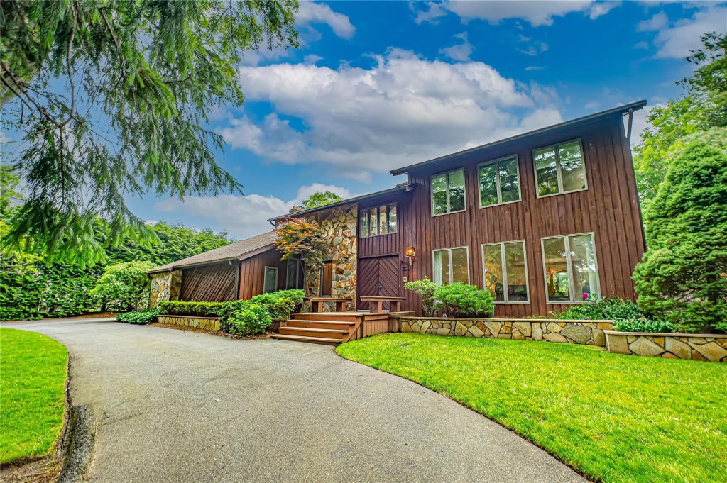 Welcome to this Custom Contemporized Colonial W/ Two Story Entrance Foyer, Vaulted Ceilings, Two Car Side Entry garage & 3/4 Unfinished Basement. This Three bedroom Two and a half Bath Home has a Den W/ Wood Burning Fireplace & Large Eat In Kitchen. Two Zone Burham Furnace W/ Riello Head, CAC, 200 Amp Electric, Public Water. Architectural roof +/- 5 Years Old, Inground Sprinklers, Cedar Wood & Fieldstone Siding, Blacktop Half circular driveway, Large Bi Level Rear Deck & level Private Evergreen Screened Rear yard. Central Vac as-is.