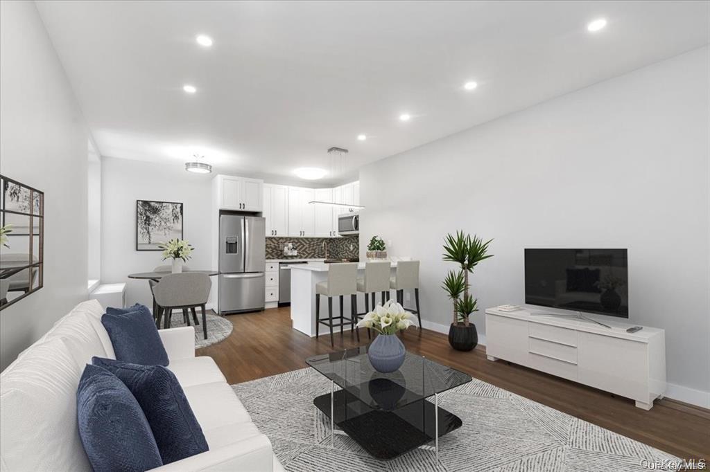 Be the second owner of this 2022 beautifully renovated 1st-floor unit in a 1928 Tudor-style landmark. Featuring 9' ceilings, hardwood floors, and a spacious open layout, this home blends classic character with sleek updates. Enjoy a designer kitchen with quartz counters, stainless steel appliances, and a peninsula with seating. The oversized bedroom fits a king set, and the stylish bath offers a seamless shower and floating vanity. Amenities include on-site super, porter, private laundry, bike/storage rooms (waitlist/fee), and additional parking infront of the buildng. Only 2 blocks to Q15/QM2 buses, with minutes to shopping, highways, bridges & airports. No Subletting~ Building Allows for 10% Downpayment & No Flip Tax.! Call today for a private showing!
