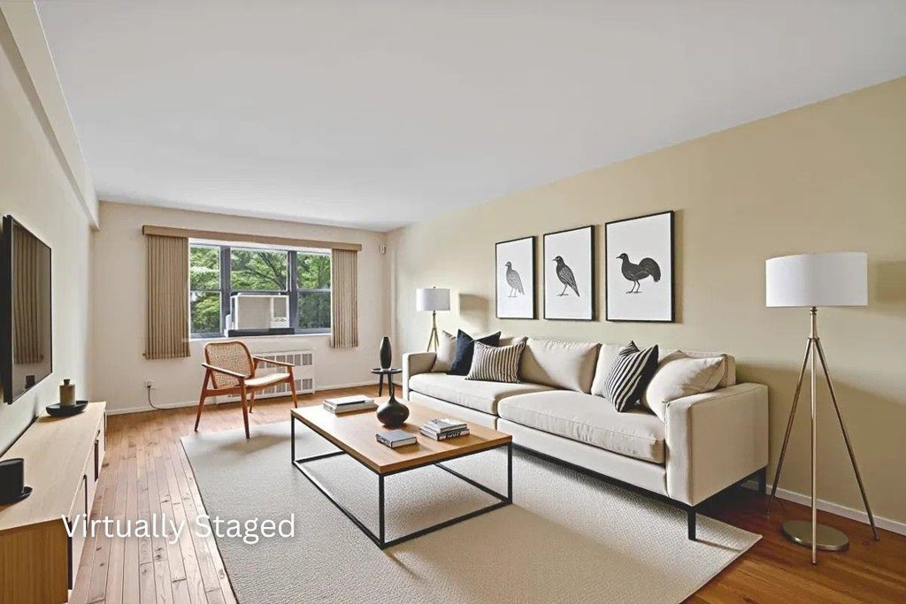 Welcome to this spacious and airy one-bedroom with low monthly maintenance of just $860.43, which includes all utilities and property tax. Located in North Flushing in a well-maintained building, this apartment features a generously sized eat-in kitchen, hardwood floors throughout (excluding the kitchen), and a large bedroom with dual windows and double closets. With plenty of potential and room for personal touches, this home is a great opportunity to make it your own. Each room has its own window, allowing for abundant natural light throughout. Close to shops, restaurants, schools, parks, and public transportation—comfort, location, and value all in one.
