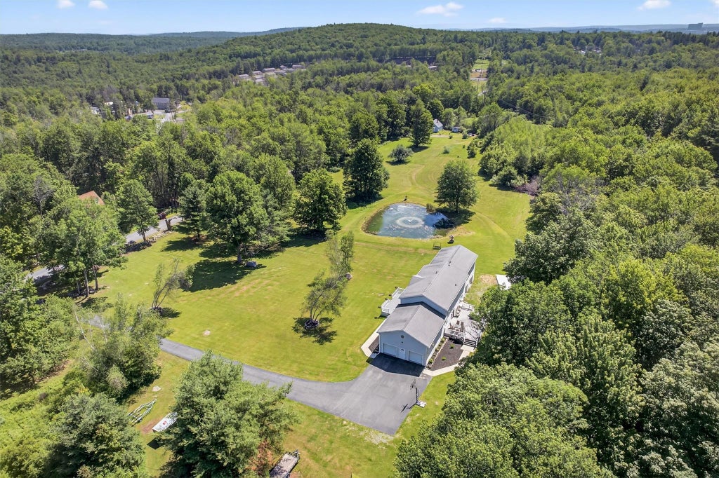 Set on 10 acres along a quiet street in Monticello, this well-kept 3-bedroom, 3-bath home offers comfort, space, and flexibility—inside and out. Whether you're looking for a seasonal getaway or a full-time residence, this property has everything you need to enjoy peaceful country living while staying close to town. The newly renovated first floor features a modern kitchen with quartz countertops, stainless steel appliances, a pantry, and an open floor plan that connects the dining and living areas—perfect for family time or entertaining guests. Updated light fixtures throughout the house add a fresh and contemporary touch. All bathrooms have been thoughtfully upgraded with new sink vanities, lighting, and flooring, and the primary bathroom includes a relaxing jacuzzi tub. Upstairs, a second-floor addition provides extra bedrooms or space for a playroom. A large unfinished attic adds even more potential for customization. The finished basement offers great space for a gym, media room, or recreational area. Two separate garages give you options—one with high ceilings ideal for vehicles or an indoor play space, the other for storage or extra gear. Outside, enjoy large front and back decks with beautiful views of the property, including a private pond with a fountain and koi/carp fish. Behind the house, there’s even a treehouse with a slide—a perfect touch for kids or guests. Located just 5 minutes from town, you're close to grocery stores, restaurants, parks, a waterpark, and a casino—making this home the perfect blend of tranquility and accessibility.