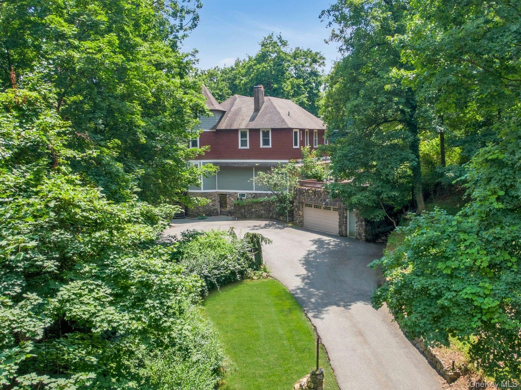 A beautiful blend of Victorian and Craftsman design eras, Rockledge at Harriman is a masterpiece of architectural style. With period details including thick fieldstone walls, original woodwork, the turret spanning all four levels, glass pocket doors, window seats, and two wood-burning fireplaces. The beautifully updated eat-in-kitchen which overlooks the pool, is equipped with top-of-the-line appliances and artistic lighting. Along with the expansive living room and formal dining room, completing this level is a 1st floor bedroom and full bathroom. The master bedroom suite on the 2nd floor includes an immense walk-in closet, water closet, steam shower and jetted whirlpool tub, plus an east-facing Juliet balcony for breathtaking sunrises. 4 additional bedrooms complete this level. With 10’ ceilings and light-filled rooms, this 6+ bedroom home offers nearly 5,000 sq ft of living space including the full walk-up attic with fantastic living space and plenty of storage, and the finished walk-out basement. The basement, with a wet bar, fireplace, and half bath, adds another fabulous gathering space and has two private entrances allowing access from either the driveway, or the pool. The outdoor space offers the luxury of an inground saltwater heated pool with spa and waterfall, multiple outdoor terraces, a level lawn, and the impressive and unspoiled surroundings of nature. The patio and rooftop deck on the western side of the home offer picturesque mountain views of sunsets and starry skies amid the curated gardens. Strategically positioned atop the hill of Rockledge Gardens, the house sits on a dead-end private 1.75-acre lot with no through traffic, offering sublime privacy and a wondrous, peaceful setting abutting Harriman State Park. Village life and commuting options are a dream as the home is located within a mile of downtown Suffern, offering quaint shops, fabulous restaurants, and public transportation. NJ Transit is less than a mile away with an express train to Penn Station in under an hour. Updates include: boiler and 75 gal water heater (2025), exterior wood siding paint (2022), appliances (2020-22), in-ground gunite, heated, salt-water pool w waterfall and spa (2014), fenced-in yard.