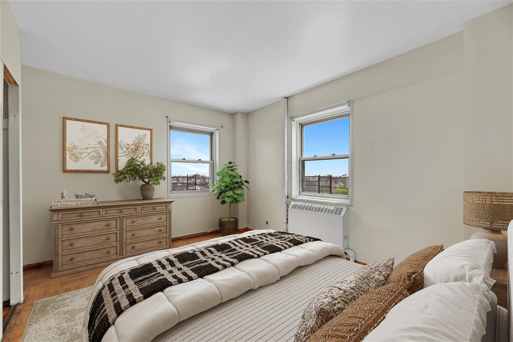 Motivated Seller Welcome to Unit 12C at the desirable Fordham Hill Oval, where comfort meets panoramic beauty. This spacious high-floor one bedroom co-op offers sweeping city skyline and Hudson River views that create a serene and inspiring backdrop to everyday living. As you step into this sun-drenched unit, you're greeted by an expansive living and dining area with oversized windows that flood the space with natural light. The layout is thoughtfully designed, offering both functionality and flow, perfect for relaxing evenings or entertaining guests. The generously sized bedrooms easily fits a king-size bed, and features ample closet space. The kitchen offers modern cabinetry, generous counter space, and full-sized appliances, making meal prep both stylish and efficient. A tiled bathroom rounds out the home with classic charm. Located in a beautifully landscaped, gated community, Fordham Hill Oval offers full-service amenities including on-site laundry, package room, and playgrounds. Just minutes from Fordham University, shopping on Fordham Road, and public transportation (B/D/4 trains and express buses), this home combines tranquility with urban convenience.