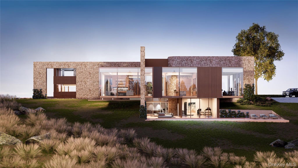 Crestline is a visionary to-be-built residence with 6,216 finished square feet of meticulously designed living space, including three bedroom suites and four-and-a-half luxurious baths. Perched atop a 41-acre hilltop with commanding 360-degree views of the Catskills, Stissing Mountain, and the rolling agricultural valleys below, this architectural masterpiece harmonizes with its natural surroundings. Located minutes from Rhinebeck and Red Hook, known for boutique shopping and farm-to-table dining, Crestline offers effortless access to the Taconic State Parkway, putting New York City just 90 minutes away. Surrounded by farmland that enhances privacy and openness, the property also enjoys proximity to hiking trails, antique markets, and the many recreational offerings of the Hudson River Valley. The home’s architecture unfolds in two distinct volumes, joined by a soaring triple-height glass foyer. The west-facing pavilion, a glass-wrapped structure that appears to float above the land, houses open-plan social spaces and showcases breathtaking views of the Catskills. Inside, 13-foot ceilings and floor-to-ceiling windows flood the living room, gourmet kitchen, dining area, and library with natural light. A fluted-glass and steel partition subtly separates the kitchen from the formal dining area, while a dual-sided fireplace adds warmth between dining and great room. The library, offering panoramic views over the pool and landscape, provides a tranquil retreat for reading or remote work. Below this pavilion, inset into the slope, is a lower-level lounge and a separate pool house with full bath and sauna. The eastern volume, a grounded stone and wood structure, contains the private living quarters. On the main level, a generous screening room and serene primary suite offer comfort and privacy. The suite includes a spa-like bath, dual walk-in closets, a fireplace, and access to a secluded terrace. Upstairs, a cozy family room and two spacious bedrooms, each with ensuite baths and walk-in closets, create a quiet retreat. Outdoor living is fully integrated into the design. Off the foyer and great room, a hardscaped kitchen and dining terrace with retractable shade structures provides the ideal setting for alfresco entertaining. The west-facing pool deck steps gracefully down the slope and aligns with the lower lounge and pool house. This expansive tiled patio includes shaded seating with a fireplace and sun-drenched lounging areas. The primary suite opens to its own terrace, while two rooftop gardens offer additional outdoor escapes with sweeping views. Two hand-laid stone feature walls define the architectural experience, serving both structural and aesthetic roles. These monumental walls weave indoors and out, anchoring fireplaces, the outdoor kitchen, and wet bar, while creating a seamless connection between home and landscape. At the entry, they form a stone-lined vestibule, setting the stage for a dramatic reveal. A floating steel, wood, and glass staircase rises through the triple-height foyer beneath a skylight that pours daylight onto the stone. Interior finishes reflect a modern yet grounded sensibility. Rough-hewn stone contrasts with clean lines and refined materials: wide-plank oak floors, rift-cut walnut cabinetry, quartzite countertops, marble bath tiles, and burnished brass accents. The exterior, finished in glass curtain wall, anodized bronze, and sustainable Accoya wood, embodies durable elegance. Crestline is powered entirely by electricity. A geothermal system, triple-pane windows, high-grade insulation, and energy-efficient appliances ensure sustainability. From quiet evenings in the library to weekend gatherings around the pool, Crestline offers the rare combination of high design, immersive views, and a lifestyle rooted in privacy and connection. This is not just a home - it's a retreat where architecture and nature exist in perfect harmony.