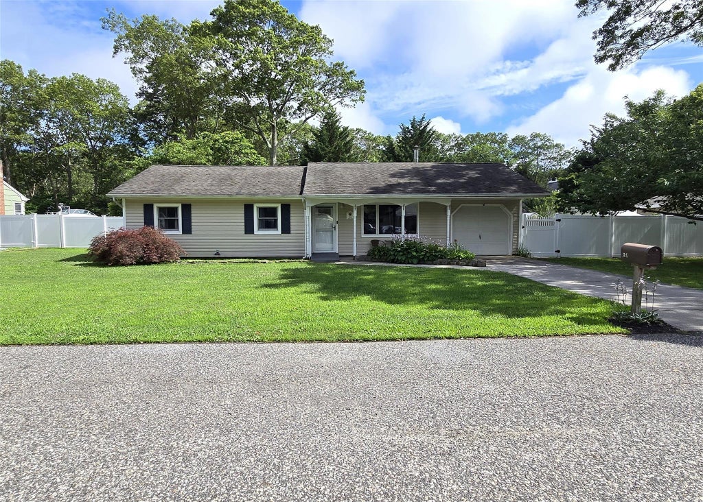 Magnificent Ranch newly remodeled Features New Kitchen with skylight, Stainless steel appliances, stone countertops, New Bathroom with skylight, extra large vanity, & walk in shower, Living room, 3 Bedrooms, and Sunroom. New Roof, New Windows, New Doors, New Floors, new Wall units Air Conditioning, New Oil Boiler, New Above ground Oil Tank, New Cesspool line!