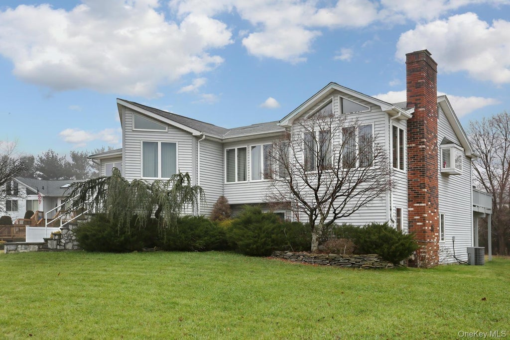 Dramatic 2800 square foot Contemporary Ranch! This home has many desirable amenities including cathedral ceiling in family room with fireplace. Primary bedroom with en suite full bath. Generous sized rooms, Formal dining room plus eat in kitchen. Deck and patio overlooking fenced in inground pool, central air, two car garage & attic storage. Lower level offers separate entrance on street level with second kitchen open to familyroom or playroom, full third bath with shower, bedroom, office and laundry room. Lovely tree lined street in Clarkstown North school district. Unique layout for extended/large family or in home office set up. Sitting pretty on almost half acre of level property. Close to town shops, restaurants, library and more. Lots of possibilities and potential. New City is home to the County seat. Buy a new lifestyle!