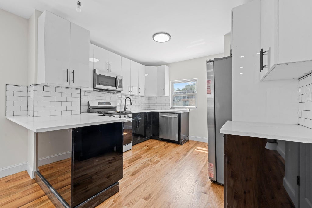 Space, style & modern luxury come together at 133-36 114th Place. A newly renovated, turn key, move in ready detached single family nestled on a beautiful, picturesque block of South Ozone Park/ Wakefield Queens. Featuring a wide private driveway, garage, and tons of outdoor space to enjoy family & friends gatherings. 1st floor features an expansive sun drenched, modern open concept living/dining area which provides great space for entertaining. Towards the rear the elegant chefs granite kitchen is equipped with floor to ceiling custom cabinetry, adorned with a full fleet of stainless steel appliances, equipped with island for bar stool seating and leads out into lush rear yard. 1/2 bath on first floor for your guest. Up a flight of stairs 3 spacious bedrooms awaits you, each equipped with ample closet space. Down the hall a fully tiled bathroom is adorned with state of the art wall & floor tiles. Renovations include brand new select wide oak wood flooring, recessed lighting, updated electrical, heating, plumbing and energy saving split unit central AC systems throughout. The high ceiling full finished basement has both interior and exterior access and can easily be used as the perfect in-law suite, additional recreational space, or storage space. 133-36-114 Place is conveniently located with close proximity to major transportation which makes commuting a breeze. Just off Rockaway Blvd, Short blocks to Resort World Casino, Belt Parkway, Conduit, JFK Airport and airport hotels. Wide array of restaurants, cafes, parks and many other vibrant neighborhood amenities.