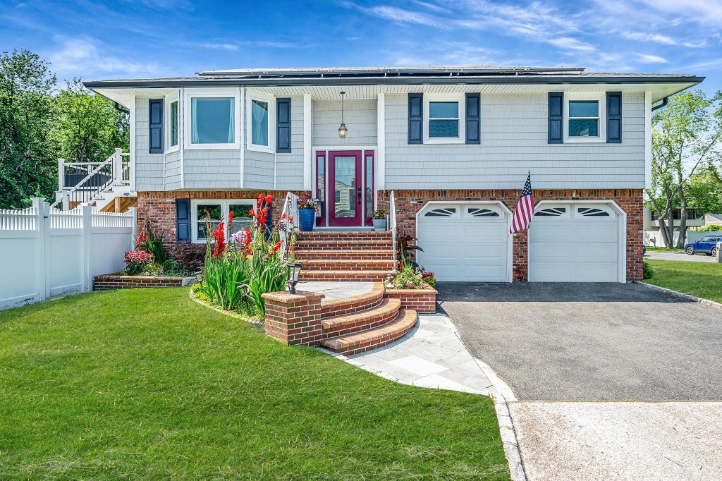 Beautiful 4 bedroom Hi Ranch in the desirable Oakdale south of main street with inground pool. Gleaming Hardwood floors throughout the upper level. Light and bright wide open kitchen with granite countertops and stainless appliances. Upper level has 3 beds, full bath, kitchen, dining area, large living room and sliding glass doors to a second level composite deck overlooking the pool. Lower level features additional large living area, bedroom, full bath, access to the oversized 2 car garage and sliding glass door access to the covered patio beneath the deck. Central air, inground sprinklers, fully fenced with pvc, solar and roof 10 years young, 200 amp service, wired for future full house generator, gas available in the street.