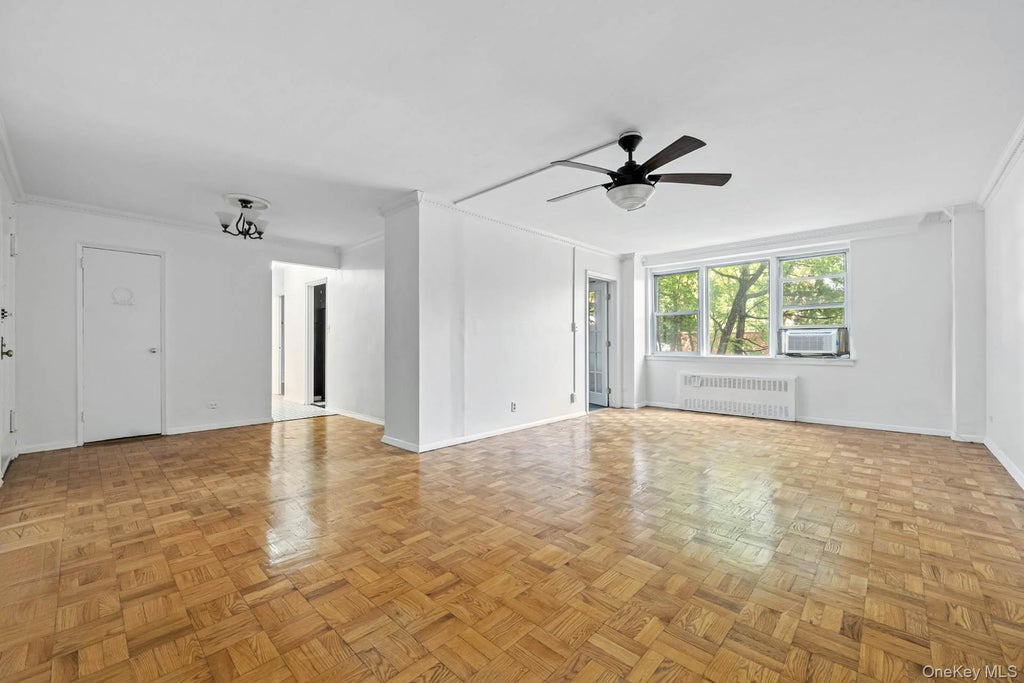 Welcome to this well-proportioned junior 4 apartment, converted to two, located in the heart of Riverdale on a quiet, tree-lined street. Situated in the Edmond Lee cooperative, this full-service building offers a range of desirable amenities including a doorman, live-in superintendent, elevator, gym, seasonal swimming pool, garage parking, storage, bike room, and laundry facilities. Pets are welcome. Access to the pool is included with your maintenance! The apartment features a gracious layout with beautiful natural light and a private balcony that overlooks the building’s lush landscaping and mature trees. With its northwest exposure, you’ll enjoy peaceful privacy and warm afternoon sunlight. The balcony can be accessed from a versatile room that can function as a dining area, home office, den, or second bedroom. Hardwood floors run throughout the space, and every room benefits from windows, creating a bright and airy ambiance. The entry foyer offers a coat closet and enough space for a small table or chaise. The spacious living room showcases treetop views through oversized windows, and the charming, windowed kitchen features a classic black-and-white design with vintage ceramic tile. The primary bedroom is generously sized and offers excellent closet space. The bathroom continues the pre-war character with timeless black-and-white subway tiles. The building’s large seasonal swimming pool is beautifully landscaped and features a separate patio and sundeck area, along with distinct seating and play areas for added privacy and enjoyment. Ideally located across from a local park, the building is just two blocks from Johnson Avenue and Riverdale Avenue's vibrant shops and restaurants, including Starbucks, supermarkets, pharmacies, gyms, Riverdale Spa & Tennis, and more. Public transportation is easily accessible with express and local buses nearby, a Metro-North shuttle, and the #1 subway at 231st Street and Broadway just minutes away. Maint is $1,173.20, capt. assessment: $71.28 and assessment: $137.09.