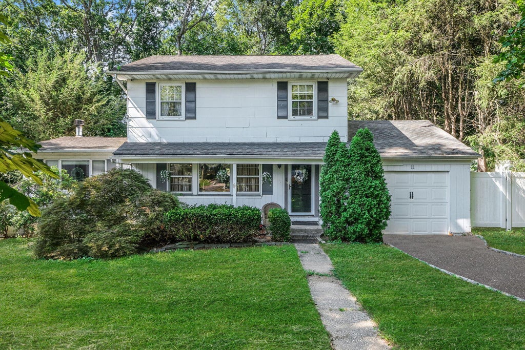 Tucked away at the end of a quiet cul-de-sac in the desirable Melville Triangle, this beautifully expanded Colonial offers a rare combination of privacy, charm, and convenience—all within the prestigious Half Hollow Hills School District. Featuring 3 bedrooms and 2 full baths, this thoughtfully designed home welcomes you with an updated kitchen showcasing stainless steel appliances, gleaming granite countertops, and an impressive built-in island with generous storage. The kitchen flows seamlessly into the extended den, where custom built-ins and a striking wood-burning fireplace/stove create an inviting atmosphere for cozy evenings and effortless entertaining. Set on a fully fenced, secluded lot, the backyard is a private haven featuring double decks, mature landscaping, and a large storage shed—ideal for outdoor gatherings or quiet relaxation. A finished basement with tile flooring and a dedicated laundry area adds extra flexibility for work, play, or storage, while a 1-car garage completes the package. Additional highlights include central air conditioning, forced hot air heating, and an unbeatable location just moments from major highways, fine dining, and shopping destinations. Being sold as-is, this is a rare opportunity to own a truly special home in one of Melville’s most sought-after neighborhoods. Low Taxes $12,034!