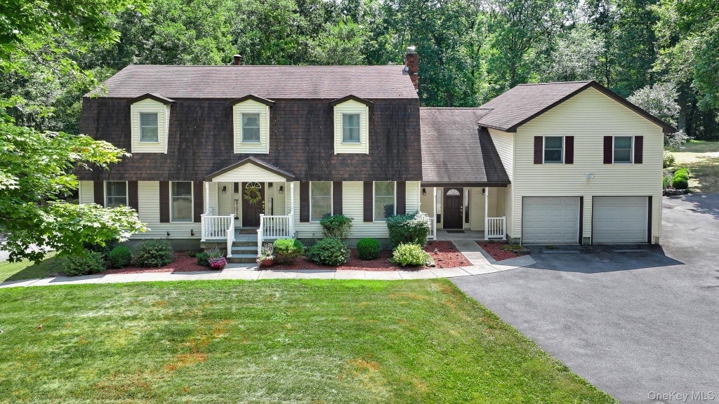 Nestled gracefully amidst more than thirteen acres of lush, undisturbed countryside, this remarkable colonial-style residence stands as a testament to elegance, comfort, and thoughtful practicality. A rare offering in today’s market, the property invites you to experience the best of both worlds: resplendent rural seclusion and immediate access to the conveniences of modern life. Conceived as a sanctuary for multigenerational living, the home harmonizes stately architecture with warm, welcoming interiors, making it an idyllic haven for all who reside within. This home boasts five bedrooms, four baths, two kitchens and has 3358 square feet of living space. The first floor has a spacious formal dining room, living room, sunroom, office, den, beautiful eat in kitchen, laundry and bathroom. There's also plenty of closet space for storage. The second story has a primary bedroom suite with a full bathroom, closet, and a bonus room attached that could be a dressing room. The additional bedrooms are good sized, have generous closet space and share an additional full bathroom. There is easy access in the hallway to the pull down stairs to the attic. The unfinished basement provides endless storage possibilities. There is also a second kitchen, bedroom and full bathroom above the garage, that is perfect for multigenerational living. With two garages, there is ample parking for your cars. The exterior grounds are nicely landscaped with custom rock walls, a stone patio for gathering, a deck for BBQ's and outdoor dining, plus vast acreage to explore. Located in the Minisink Valley School District. Commuter distance to NYC. This unique property offers something for everyone!