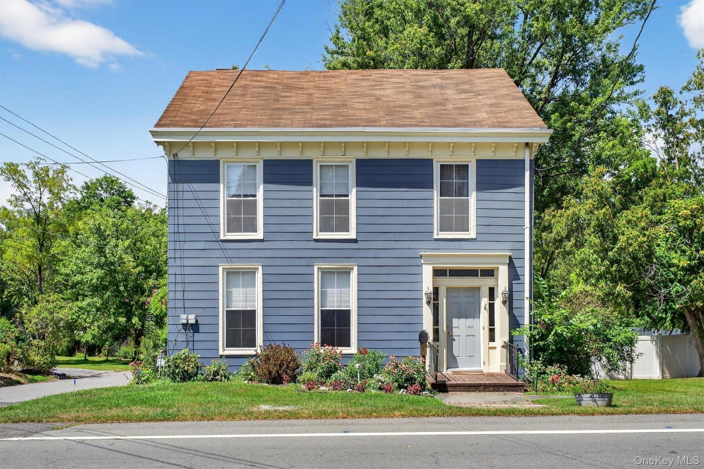 Proud C.1841 village of Goshen 3 BR Colonial is set on .44 acres with lovely private and partially fenced back yard! Period detail with large windows and built ins! Sunny and open! Gracious entry foyer! Large LR with old ceiling beams exposed! Formal DR! Eat in kitchen has stainless steel appliances, recessed lights and large pantry! Office/den with built ins! 1st floor laundry! Private rear deck! Central air! Driveway for the home is on Pond Rd. Convenient to Goshen Library and all the historic Village of Goshen has to offer!