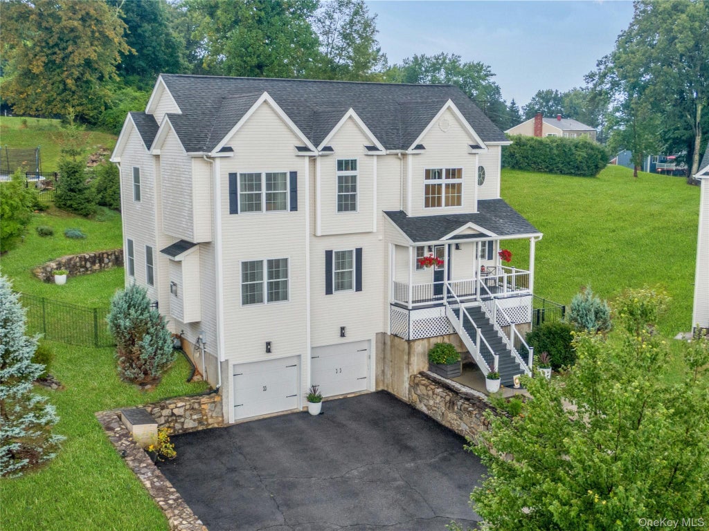 "THE RIDGE TOP RETREAT" - At the end of a picture-perfect cul-de-sac in the sought-after Ridge Top Estates, located just under an hour from New York City, enveloped by the natural beauty of the Hudson Valley, sits a home that blends modern elegance with warmth and ease. Built in 2012 and lovingly maintained, this stately and striking Colonial still feels like new construction, offering nearly 3,000 square feet of impeccably designed living space that is as functional as it is beautiful. From the moment you arrive, the wide driveway, two-car garage, and charming rocking chair front porch set the tone for a home that welcomes family, friends, and quiet moments alike, with sweeping mountain vistas. Step inside and be greeted by a dramatic double-height foyer, awash with natural light that streams through tall windows and casts a calming glow across the immaculate hardwood floors. The thoughtful layout unfolds seamlessly, with formal and casual spaces designed for both daily living and entertaining. The living room, anchored by a gas fireplace and tray ceiling, invites cozy evenings by the fire. The chef's eat-in kitchen is the heart of the home, boasting custom cabinetry, stainless steel appliances, granite countertops, and a center island perfect for gathering. A formal dining room offers a stage for holidays and celebrations, while a versatile bonus room - with its own tray ceiling, can transform into a home office, playroom, gym, or even a guest suite. Upstairs, the sense of serenity continues. Three generously sized bedrooms share a full bath, while the primary suite stands as a private retreat with a walk-in closet and spa-like en-suite featuring a soaking tub and double vanity. A large window at the top of the stairs captures sweeping mountain vistas, a reminder that nature's beauty is just outside your door. The possibilities extend even further with a full walk-out basement, soaring ceilings, and space ready to be finished into a media room, recreation area, or guest quarters - whatever your vision requires. Outdoors, the property becomes a true sanctuary. The fully fenced backyard is ideal for four-legged friends and free-spirited play. A dramatic rock wall and meticulous landscaping frame the space, where a fire-pit lounge offers the perfect gathering spot for stargazing, roasting marshmallows, and sharing stories deep into the night. A side deck beckons for summer cookouts, while a garden at the property's edge provides a canvas for anyone with a green thumb. From morning coffee on the porch to evening sunsets over the mountains, this home offers a rhythm of living that is both elevated and effortless. Life beyond your doorstep is just as captivating: explore the quaint village of Warwick with its artisan boutiques, farm-to-table restaurants, and live-music-infused cider bars. Spend weekends wandering apple orchards and family farms like Apple Dave's or Pennings Farm Market-perfect for fresh cider, donuts, and harvest-time fun. Venture into nearby parks and preserved landscapes, where hiking and biking trails weave through breathtaking forests, lakes, and ridge-lines-welcoming both peaceful rambles and adventurous climbs all just an hour from NYC. Turn-key, timeless, and thoughtfully designed, wether you are seeking a weekend retreat or full time residence, 18 Tanyas Court is more than just a home-it's a place to grow, to gather, and to savor life's best moments.