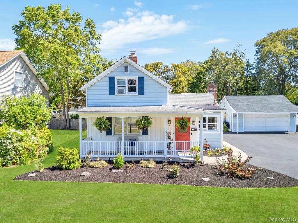 Step into the timeless elegance of 181 Blue Point Avenue - a lovingly maintained residence in the heart of Blue Point that beautifully blends historic charm with today's modern updates. Throughout the home, you'll find a balance of character and convenience, from original detailing to thoughtful updates that make it move-in ready while leaving room for personal touches. When you step inside you'll find an inviting living room with wood burning fireplace, wood-beamed ceilings, and built-in shelving. The spacious layout flows seamlessly into the dining area, creating the perfect setting for both gatherings and everyday living. The updated kitchen is a standout, with crisp white cabinetry, butcher-block countertops, subway tile backsplash, stainless steel appliances, and a sleek, modern design that balances style with function. This home offers 3 bedrooms and 1.5 baths, and sits on nearly half an acre, providing ample space to relax, entertain, or create your dream outdoor retreat! A detached 2 car garage adds extra storage space, while the wide, oversized driveway ensures plenty of parking. Situated in a friendly, well-sought after neighborhood, this home offers peace and privacy yet remains close to local amenities, such as the park/playground, library, schools, beach, shopping and dining, all less than a mile away! This home offers the perfect mix of Long Island charm, convenience, and modern living. Whether you're looking to settle into a welcoming community or invest in a home with endless potential, this property is a must-see!
