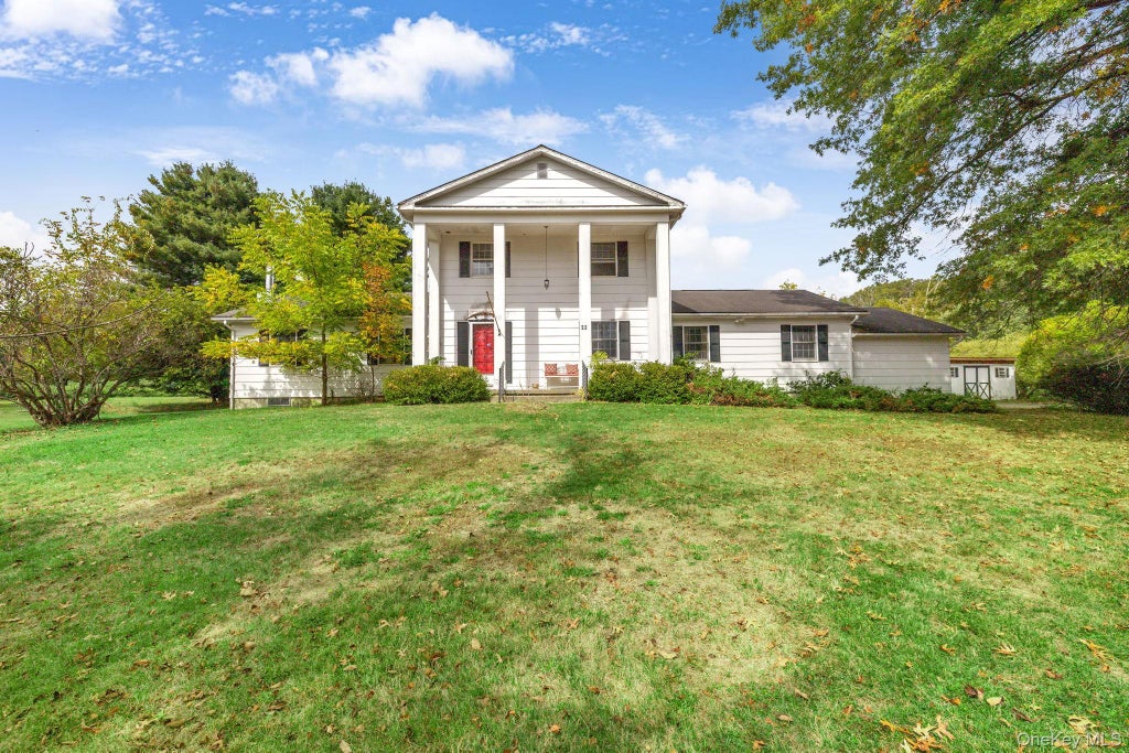 Grand Colonial in the Minisink Valley School District on 1.7 Acres! Welcome to this stately colonial, offering space, charm, and endless potential. With your personal touches and updates this incredible home can truly shine! Set on 1.7 acres of beautiful property, this home provides the perfect balance of space, convenience, and privacy—all within the highly sought-after Minisink Valley School District. Step inside to a beautiful oversized foyer that sets the tone for the home’s spacious floor plan. The large formal dining room is perfect for hosting holidays and special gatherings, located just off the expansive kitchen with plenty of room to customize into your dream culinary space. The family room invites you in with a cozy wood-burning fireplace, ideal for entertaining or quiet nights of relaxation. A slider opens to a sun room, expanding your living space and offering year-round enjoyment. The first floor also includes a half bath, private home office, and a den, giving you flexibility for work, guests or play. A laundry room on the main level adds convenience. Upstairs, you’ll find three generously sized bedrooms, including a very large primary suite with an en-suite bath and separate dressing area. A full hall bath serves the remaining bedrooms. Outside, the expansive property is truly special—level, usable land that feels private yet is just minutes from schools, award-winning restaurants, shopping, medical facilities, and all major commuting routes. This Minisink Valley Colonial combines timeless character with space for everyone, and it’s ready for its next chapter. Don’t miss the chance to make it yours!
