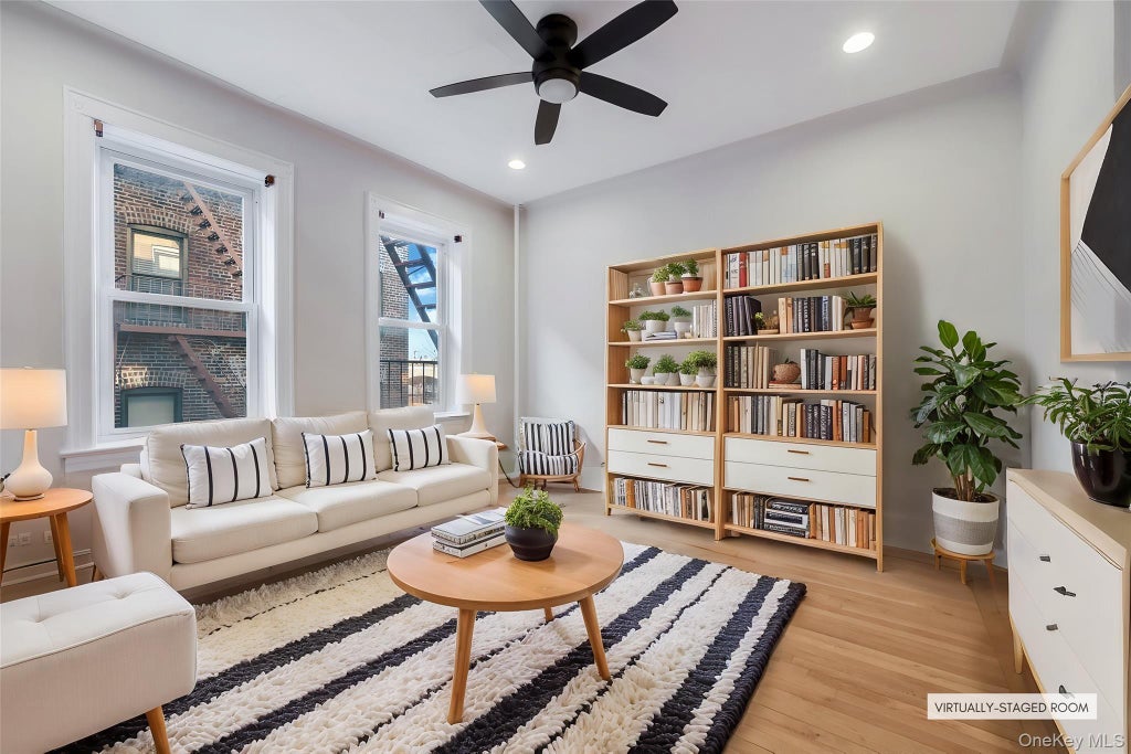 This charming one-bedroom co-op is situated on the third floor of a classic walk-up building in the heart of Sunnyside. Featuring a renovated kitchen and bathroom, this home boasts beautiful natural light in both the living room and bedroom, creating a bright and airy atmosphere. The apartment features updated hardwood floors throughout, adding warmth and character to the space. The eat-in kitchen has been updated with new stainless steel appliances, modern cabinetry, and quartz countertops. The spacious bedroom comfortably fits a king-sized bed and includes a deep closet for ample storage. The building is equipped with a video intercom system at the front door, providing added security and convenience. Located just one block from the 7 train, this prime location offers easy access to restaurants, grocery stores, and cafes. Pied-à-terre's are allowed. Don’t miss out on this fantastic opportunity to own in one of Queens’ most vibrant neighborhoods! Ask me about the Down Payment assistance program for first-time home buyers towards the down payment or closing costs!
