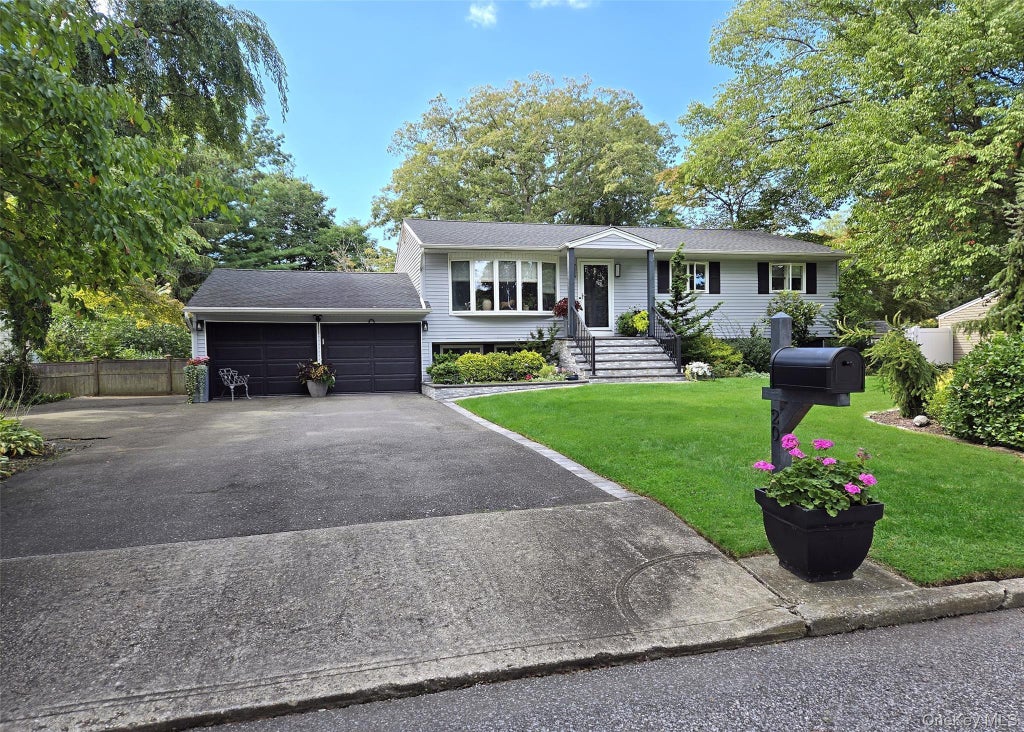 This Move in Ready 4 bedrooms, 3 full bath Hi-Ranch is a gem. The updated kitchen is a standout, featuring stainless steel appliances, a tile backsplash, and granite counters. The dishwasher is approximately 4 years old, and the home is equipped with recessed lighting, hardwood floors, and central air conditioning on 2nd Floor. You'll also appreciate the custom molding and gas cooking. The home has been well-maintained, with a new furnace installed in 2021 and a separate hot water heater. Downstairs has new flooring & a large den great for entertaining. The exterior of the home has been updated with a new stone stoop and stairway at the front entrance, Anderson windows (updated in 2012), and a 6-year young roof. Both garage doors are 5 Years Young and the front cedar fence (added in 2020). There is a 5-year-young shed and In-Ground Sprinklers on .34-acre property.