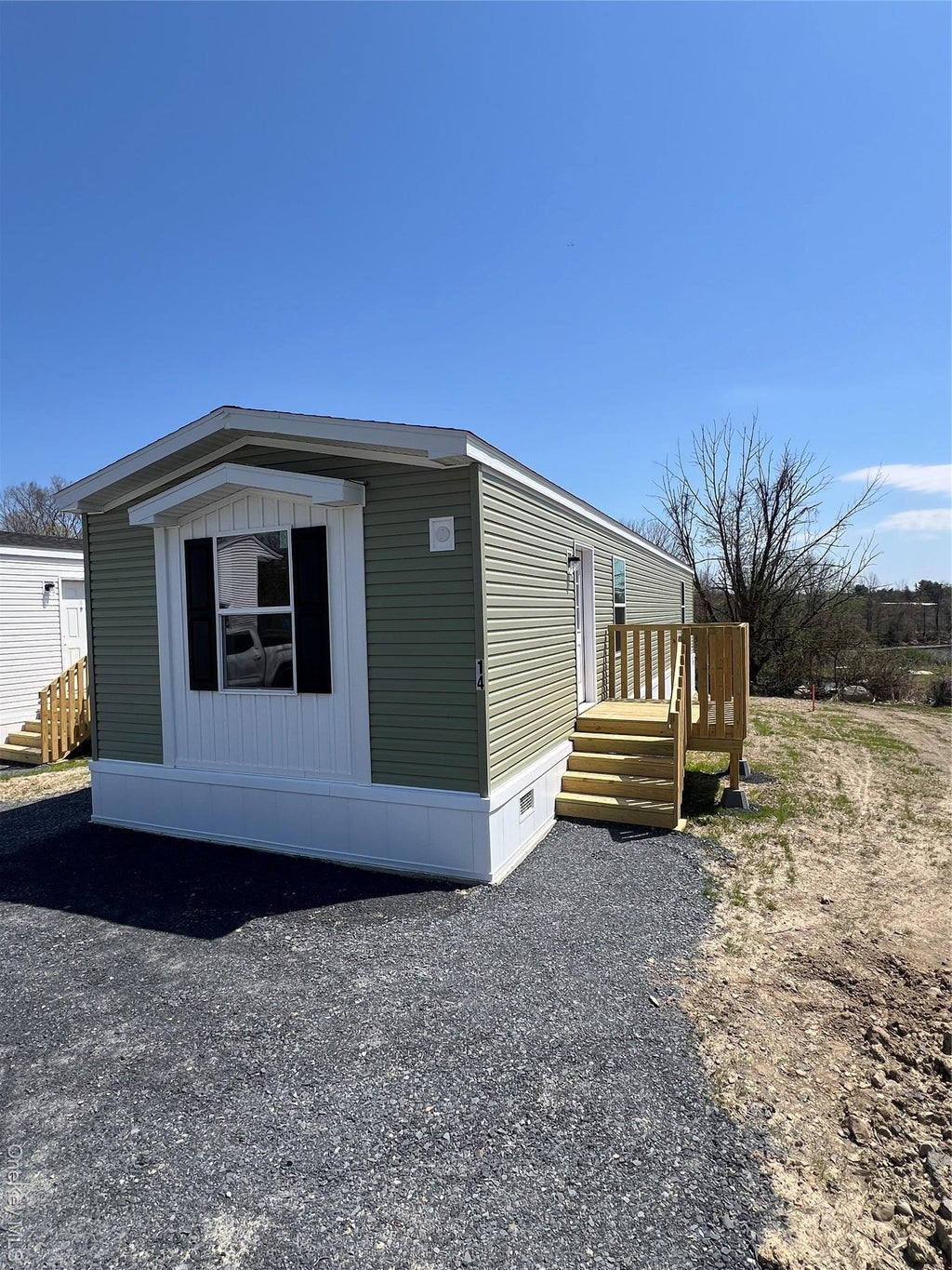 Welcome to your brand-new home! This beautiful 2024-built 2-bedroom, 2-bathroom mobile home offers 900+ square feet of thoughtfully designed living space — perfectly blending comfort, style, and affordability. Features Include: Open-Concept Living Area: Spacious layout filled with natural light, featuring stylish wood-look flooring throughout. Modern Kitchen: Equipped with brand-new stainless steel appliances, rich wood cabinetry, and a large peninsula for dining and entertaining. Primary Suite: Large bedroom with attached full bathroom for privacy and convenience. Energy-Efficient Construction: New systems and appliances ensure lower utility costs. Outdoor Space: Private front porch and newly built steps, with a paved driveway for easy parking. Peaceful Setting: Located in a quiet, professionally managed community with open views and a relaxed atmosphere. Home sale is contingent on park approval and lease of the Lot. No real property is being sold just the new Mobile Homes.