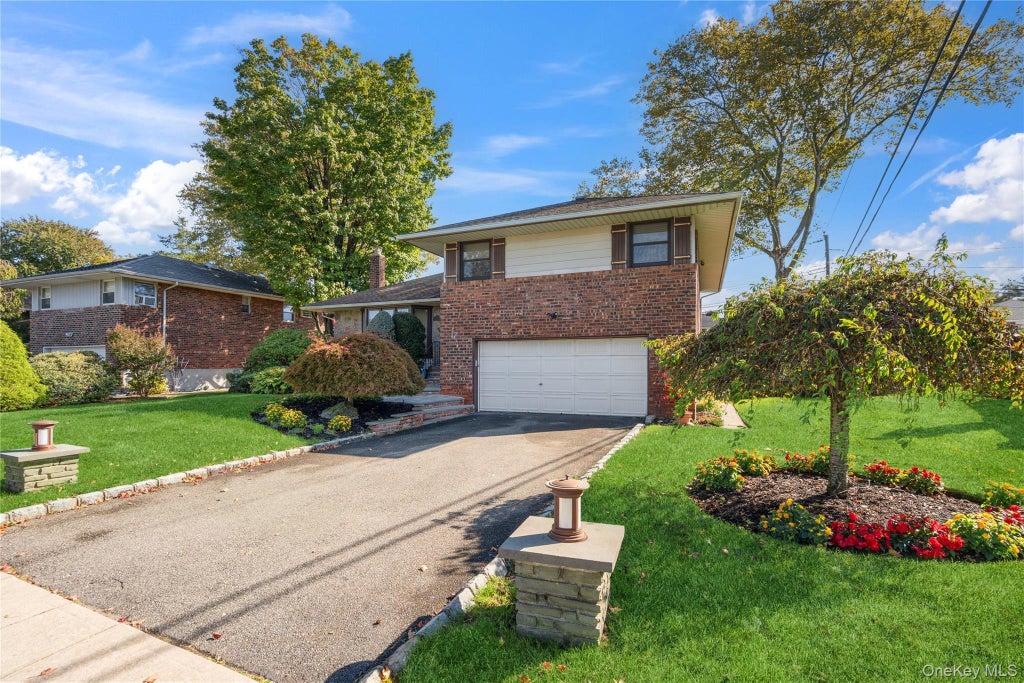 Discover this delightful split-level home, where a beautifully updated kitchen awaits, featuring modern appliances and ample cabinetry for all your culinary adventures. New Central Air, In-ground sprinklers, 10 year roof, Hi-hats throughout, Newly installed leaf guard system, Gas cooking, New above ground oil tank, new electric garage opener and many other updates. Enjoy spacious, light-filled rooms that provide both comfort and versatility. Nestled in a sought-after neighborhood, with a mid-block location, this home perfectly blends modern design with classic elegance. A must-see gem! Buyers need to confirm all information contained herewithin.