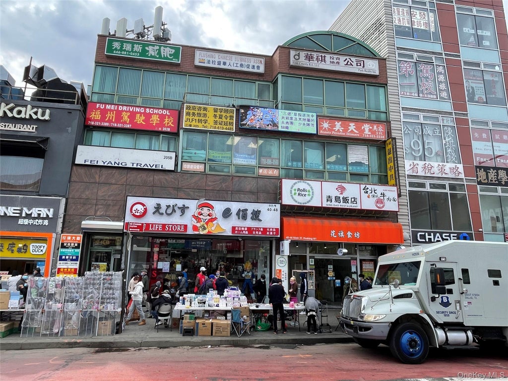 Price for $1,800 per month plus common charges and share of utilities. Space with additional balcony. Prime Downtown Commercial Area. Three Stories Granite Building in Excellent Condition Across Street From Flushing Library. One Block From #7 Subway. Next to Long Island Railroad Station.