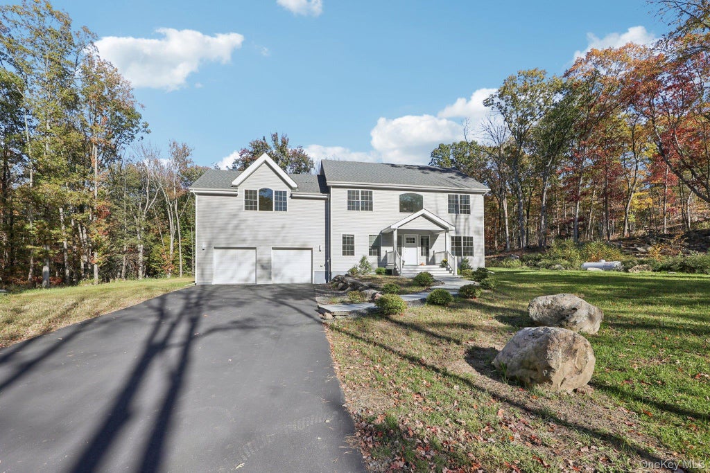 Your dream home awaits! Make your appointment to see this stunning new colonial in the Town of Warwick now! Ideal commuter location with access to Greenwood Lake on a large private 2 acre oasis bordering bucolic state parkland. Surrounded with sunlight - this 4 bedroom colonial features gleaming hardwood floors, high ceilings, and recessed lighting in an open concept layout. Large windows abound - allowing for serene views of trees, grass and sky. Spoil yourself (or invite your chef) to cook in the state of the art designer kitchen with those sexy quartz countertops. The coordinating kitchen island features shimmering pendant lights beckoning you to enjoy a beverage with friends or that morning coffee. Stainless steel appliances and a huge pantry offer ideal storage & cooking enjoyment. Everyone loves a mudroom side entry and this home has one right off the garage along with a gorgeous little powder room and additional closet space. A dining area in front of the island is perfectly placed under a sparkling chandelier, enjoying the view of the deck & greenery through glass sliders. A fireplace is not present but possible in the future as the builder designed the wall with flu so that if you decide you want one - you can. The grand stairway will lead you up to the upper level with the balcony views of an elegant chandelier framed by nature as seen through the oversized picture window. You will feel extra special in the expansive primary suite featuring a hallway flanked by walk in closets and a stunning primary ensuite with double vanity, water closet and oversized shower. The three other bedrooms all enjoy ample space, closets and views. There is also a laundry room and impeccably designed bathroom with a spacious vanity and bathtub. The A large level driveway and huge garage might even fit your boat! There's also a large unfinished basement waiting for your magic touch. Just minutes from Greenwood Lake Middle School and high school students enjoy the option of attending Warwick Valley HS or Chester Academy. Enjoy local wineries, breweries, shops, restaurants, hiking, boating, skiing and swimming in Orange County's most desirable area. 1 hr from NYC.