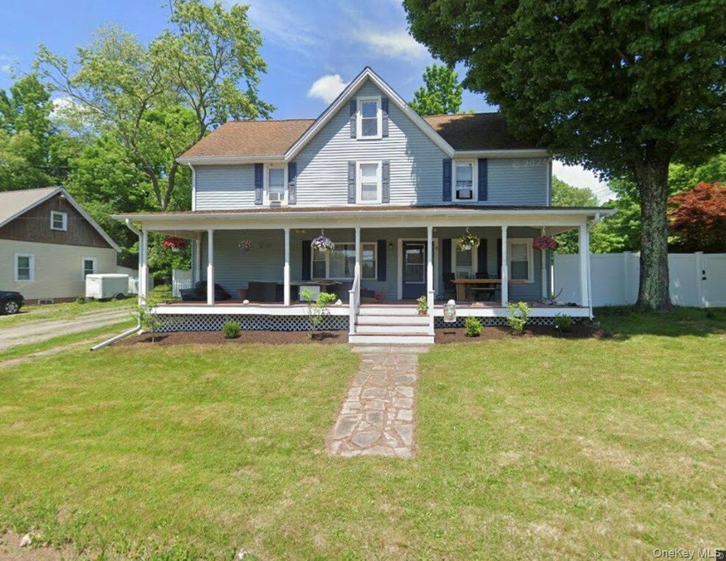 Step into timeless charm with this tastefully renovated 1900 center stair farmhouse nestled on a corner lot in the vibrant Kauneonga Lake/White Lake area. Enjoy the convenience of walking to local restaurants and the lake, plus easy access to Bethel Woods via a scenic back route—perfect for avoiding traffic during events. Inside, you'll find hardwood floors throughout and a warm, inviting layout. To the right of the entryway, the cozy living room features those original wood floors, high ceilings and plenty of windows for great natural light. It also has direct access to the completely fenced side yard. (With an 8-foot privacy fence.) This affords you some great solitude and seclusion for you and safety for any four-legged member of the family. To the left of the staircase is a spacious formal dining room and sitting area which offer a welcoming space for gatherings, along with access to a convenient half bath. The recently updated kitchen boasts stainless steel appliances, a propane cooktop with hood, stylish tile backsplash, and a washer/dryer tucked into a spacious closet for added functionality. Upstairs, the home offers three comfortable bedrooms and two fully renovated bathrooms. The primary suite includes a walk-in closet, a luxurious soaking tub, and a separate stand-up shower for a spa-like experience. A walk-up attic provides ample storage or potential for additional living space. Whether you're seeking a full-time residence or a weekend retreat, this home offers year-round enjoyment in one of upstate New York’s most thriving hamlets—with excellent short-term rental potential as well as a perfect home to raise a growing family.