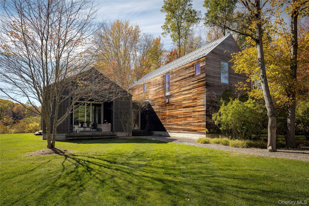 Exquisitely Designed Compound on Upton Lake Perched gracefully on the banks of the shimmering waters of Upton Lake, this distinguished compound residence by Lake|Flato presents a rare opportunity to own a residence of architectural distinction, refined craftsmanship and immersive nature. Both the primary residence and guest house as well as the pool are custom, site-specific and sustainably built designs that seamlessly merge expansive indoor living with the surrounding landscape for a lifestyle of ease, elegance and discovery. Drawing on Lake|Flato’s celebrated “Porch House” methodology, the residence is defined by three gabled volumes, two of which are connected by a glass-pavilion, clad in warm western red cedar and capped by metal standing-seam roofs, a respectful nod to farmhouse vernacular reinterpreted for modern sensibility. Heavy timber-glulam white oak framing expands the great room to dramatic effect, while triple-glazed windows and super-insulated SIP panels (R35 walls, R55 roof) ensure comfort, performance and efficiency. Inside, soaring vaulted ceilings and exposed beams combine with radiant heated, polished concrete floors and finely slated woodwork to create a refined and elemental material palette. A board-formed concrete hearth anchors the great room and frames a panoramic view of the lake beyond - engaging the landscape as a continuous extension of the interior. The main living wing features an open chef’s kitchen, dining and living area fronted by full-height sliding glass doors that disappear to unite deck, lawn and lake in one seamless experience. Outdoors become indoors and every room feels connected to the forest, shore and sky. A retractable screened porch extends living into summer breezes, while overlooking the grounds, pool and guest house. The sleeping wing offers a media room and first-floor primary suite with a spa inspired wet-room bath, deep soaking tub and floating dual vanity - an intimate sanctuary of light and calm. Upstairs, two ensuite bedrooms provide serene and separated sleeping spaces. A free standing guest house on the property features two private bedrooms with en-suites and creates a true compound feel. Set on approximately two lush acres of manicured grounds, the property winds through a gravel pathway to the guest house, and beyond to the entertainment amenities. A heated 40' x 16' gunite pool edged in bluestone patio is surrounded by woodland and morning light, while adjacent recreation includes a bocce court, basketball court, treehouse, private dock and direct water access. The lakes peninsula offers a large outdoor area for community members to gather, swim, kayak, paddle-board or row. The site’s layout, designed with sensitivity to privacy and views, allows forested seclusion even as the lake lies just steps away. The architecture responds to the terrain and the waterfront in equal measure - integrated, grounded and elegant. This remarkable compound offers the best of both worlds: quiet, natural retreat and access to vibrant Hudson Valley culture. Just 14 minutes from the village of Millbrook and under 20 minutes from destinations such as Stissing House, Black Snake Brewing, and several acclaimed wineries, it remains proximate to the region’s finest dining and leisure. Within a 30-minute radius are the towns of Rhinebeck, Red Hook, Millerton, and access to both the Wassaic and Poughkeepsie train stations - making both local exploration and regional connection effortless. Rarely does a home arrive that so completely fulfills the promise of design, nature and lifestyle. Here is a compound that invites both lively gatherings and serene solitude, built by visionary architects and sited with impeccable care. For the buyer seeking something beyond the ordinary - an exceptional retreat rooted in place, architecture and waterside living - this is the one.